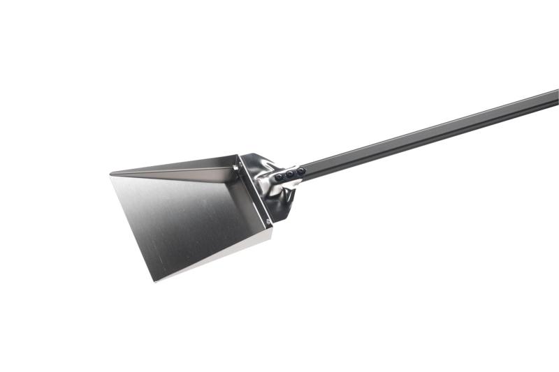 Pá para a limpeza de fornos profissionais a lenha de pizzarias, padarias e restaurantes. Permite coletar eficientemente carvão e cinzas que são depositados no forno com a ajuda do rastelo da mesma linha. O aço inoxidável torna o instrumento extremamente resistente ao calor do forno, enquanto o cabo tubular oval de alumínio o torna leve, garantindo uma boa pegada. Tamanho útil da pá: 22 x 20 cm. Material: cabeça de aço inoxidável; cabo de alumínio anodizado.