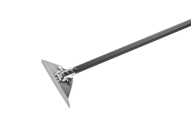 Rastelo de aço inoxidável para a limpeza de fornos profissionais a lenha de pizzarias, padarias e restaurantes. Permite recuperar resíduos sólidos (madeira, carvão, etc.) do chão do forno. O aço inoxidável torna o instrumento extremamente resistente ao calor do forno, enquanto o cabo tubular oval de alumínio o torna leve, garantindo uma boa pegada. Dimensões úteis da cabeça: 24 x 4 cm. Material: cabeça de aço inoxidável; cabo em alumínio anodizado azul.